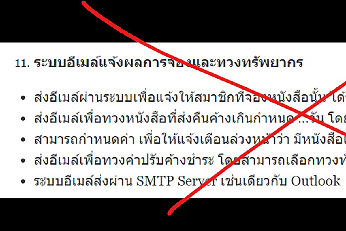 โปรแกรมห้องสมุด – ยกเลิกการจำหน่ายระบบอีเมล์แจ้งเตือน
